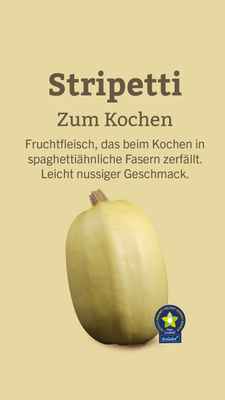 Der Spaghettikürbis hebt sich durch seine besondere Struktur ab. Nach dem Garen zerfällt sein Fruchtfleisch in spaghettiähnliche Fäden, die sich ideal als kohlenhydratarme Pasta-Alternative eignen.