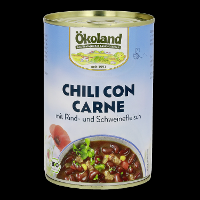 Christoph Kolumbus hat die scharfen Chili-Schoten vor langer Zeit nach Europa gebracht - heute sorgt das Gewürz für die besondere Note eines echten Küchen-Klassikers: Chili con Carne. Unser Ökoland Chili con Carne nach mexikanischer Tradition wird aus vielen leckeren Kidneybohnen und besten Fleischstücken von Rind und Schwein bereitet. Bestes Fleisch heißt auch, dass unsere Bio-Bauern konsequent für eine artgerechte Haltung und gesunde Fütterung der Tiere sorgen. Eine Komposition aus feinem Gemüse rundet die kräftige, herzhafte Mahlzeit ab.