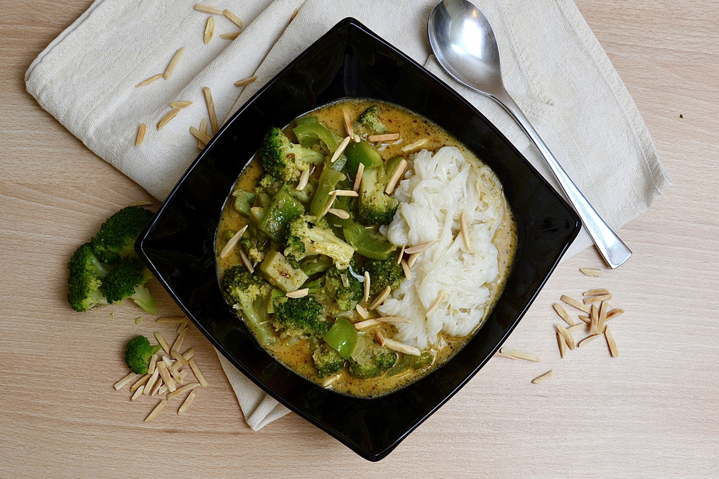 Grünes Curry mit Reisnudeln