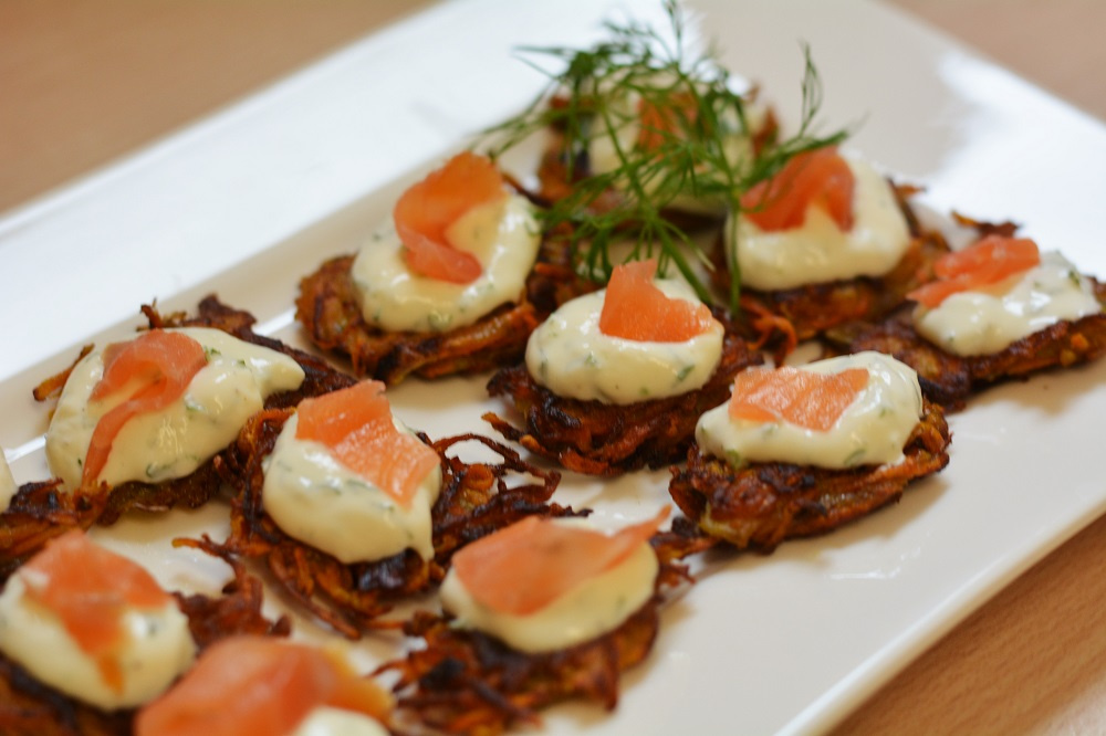 Mini Batate-Puffer mit Lachs