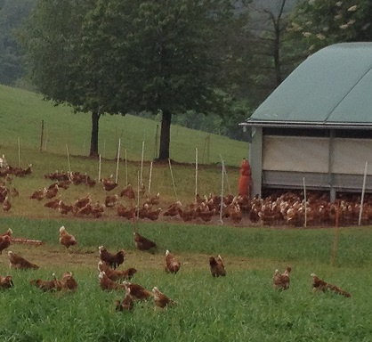 Im Herbst 2013 kam zu den beiden bisherigen Hühnerställen noch ein mobiler Hühnerstall hinzu, der Platz für 576 Hühner bietet. So kann Birgit Girschick die steigende Nachfrage aus eigener Leistung decken.